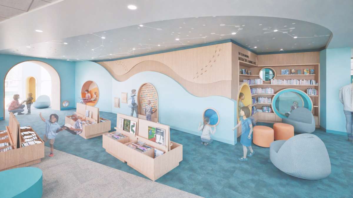 Here's a final look at the fireplace area. This rendering highlights how the space has been modernized and brightened with updated paint colors and new light fixtures. You’ll also notice that the fireplace has been relocated along the wall, creating a more open and spacious layout.