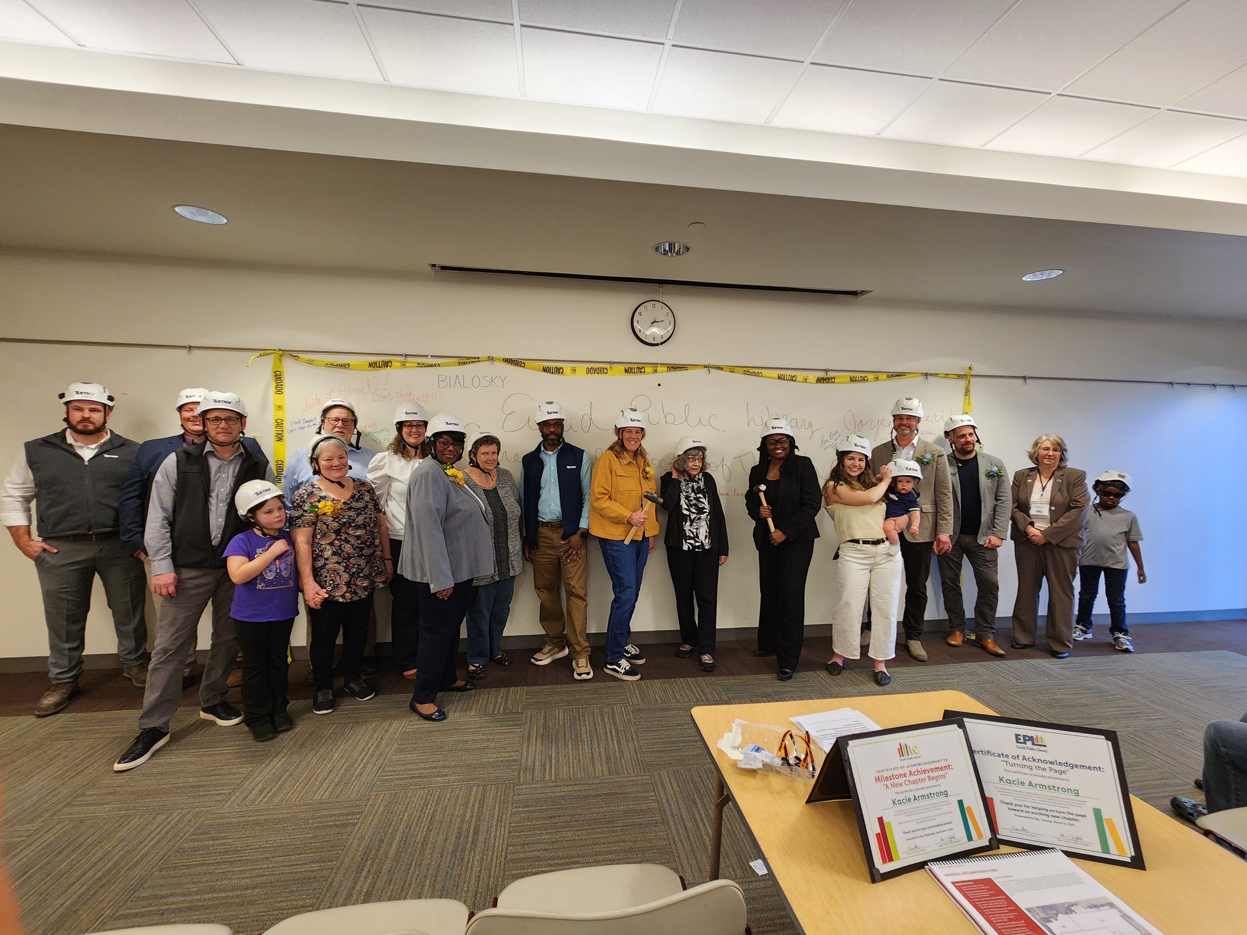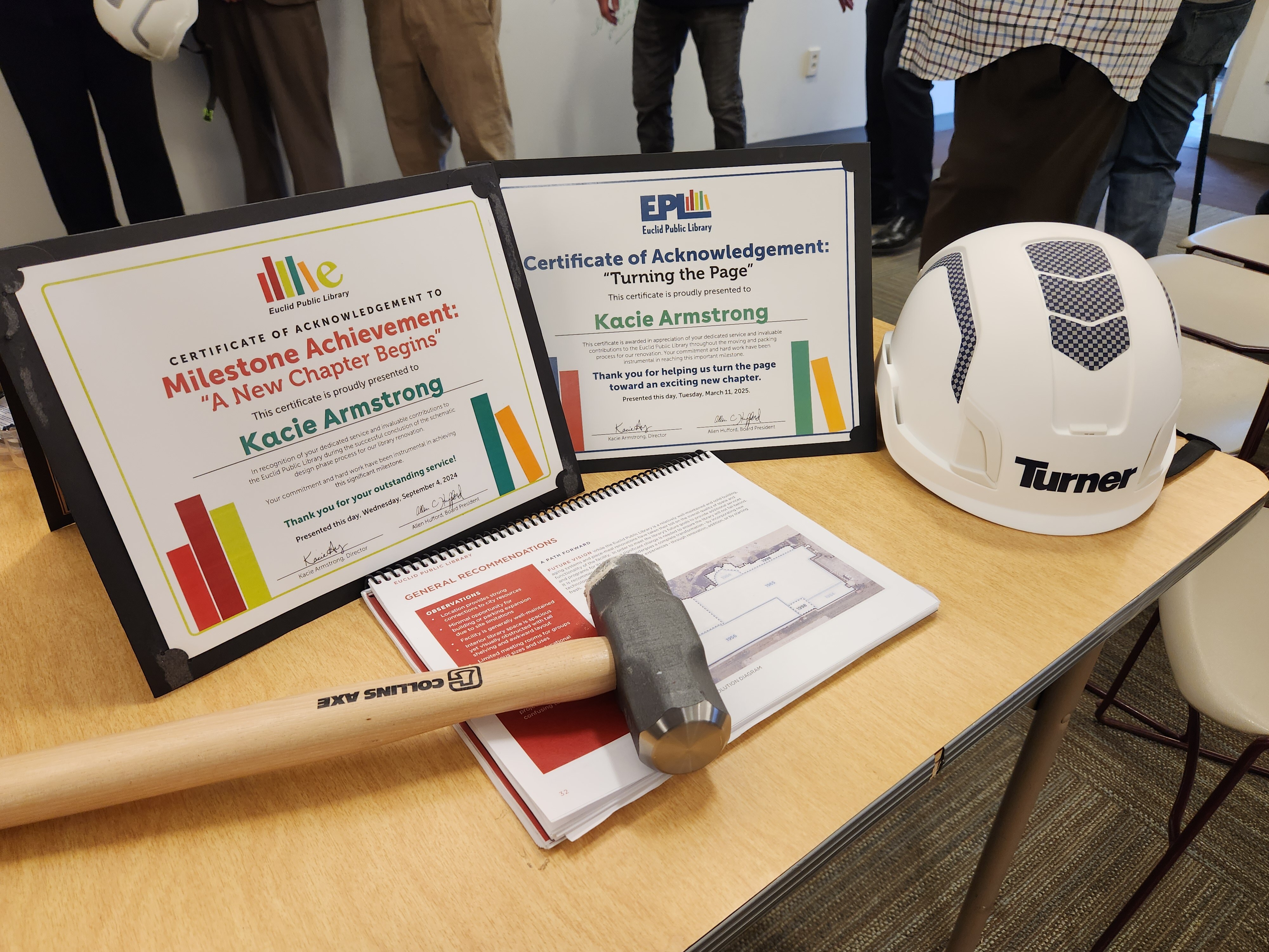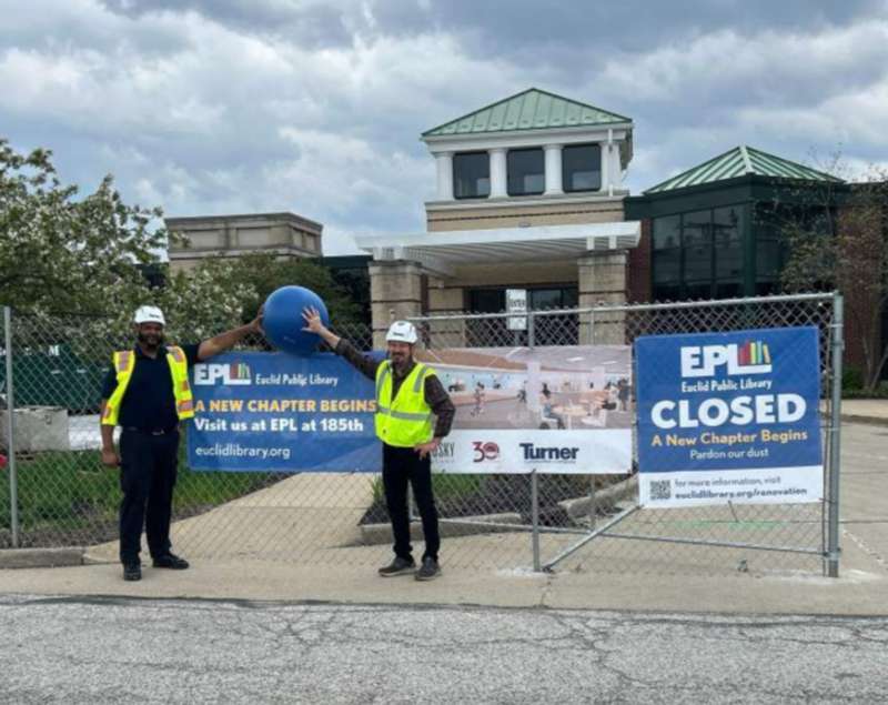 The Main Library at East 222nd Street is officially closed! Contractors have installed a gate around the property as renovation work begins. Banners have also been placed to help inform the public. Pictured are Safety Manager Ben Fagan and Maintenance Supervisor David Fasula.